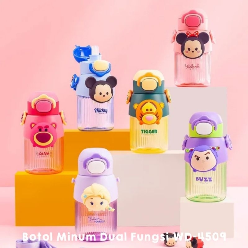 Perlengkapan Rumah > Peralatan Makan > Botol Minum & Aksesoris > Botol Minum Dual Fungsi / DISNEY Straw Direct Drinking Water Bottle 580ML WD-4509 with Squishy