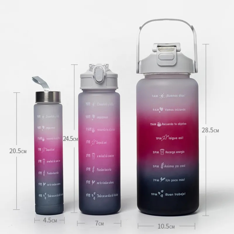 Detail BOTOL MINUM GRADASI/BOTOL MINUM BERANAK 3IN1 PENANDA WAKTU KAPASITAS BESAR 3 BUAH/SET ( 2 Liter, 900ml, 300ml )