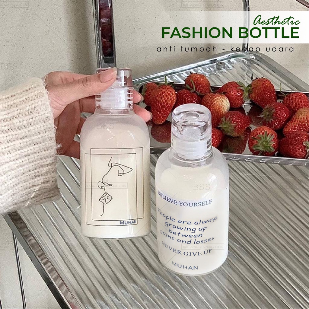 Botol Minum Kaca Aesthetic 325ml dengan Tutup Anti Tumpah Milk Jar Kopi Susu Multifungsi Kedap Udara