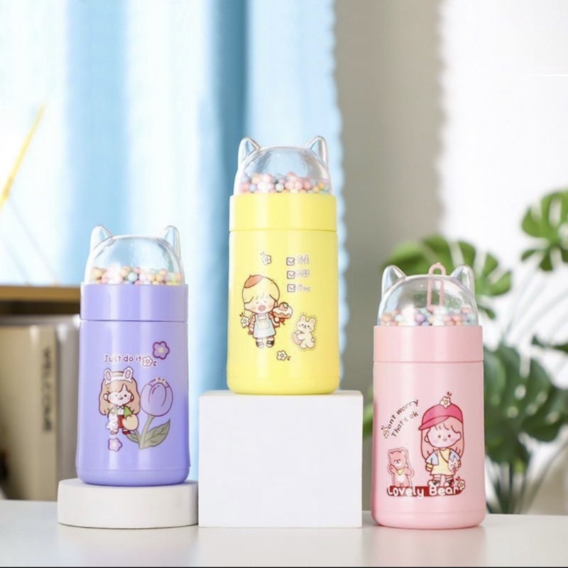 Botol Minum Kaca Anak Karakter Kucing 350 ML Botol unik cute gemoy souvenir ultah birthday anak