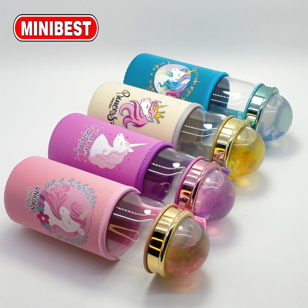 Detail Botol Minum Kaca Anti Pecah Motif Unicorn Lucu Untuk Anak/pelajar