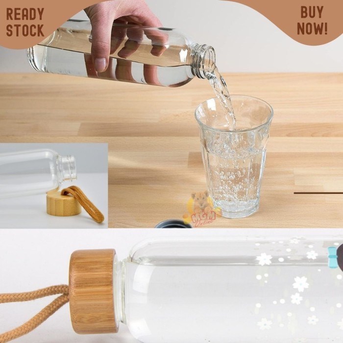 Detail botol minum kaca beling 500ml tutup bambu my bottle infuse water