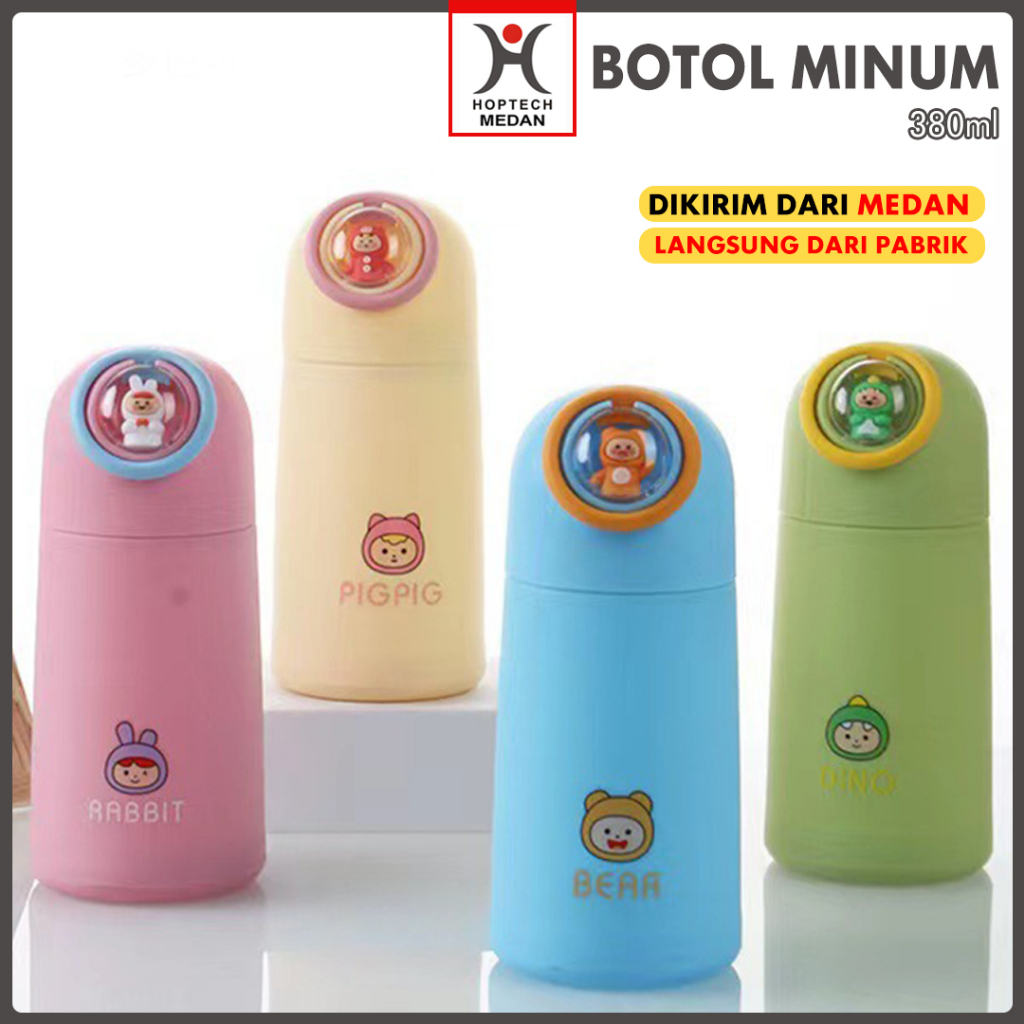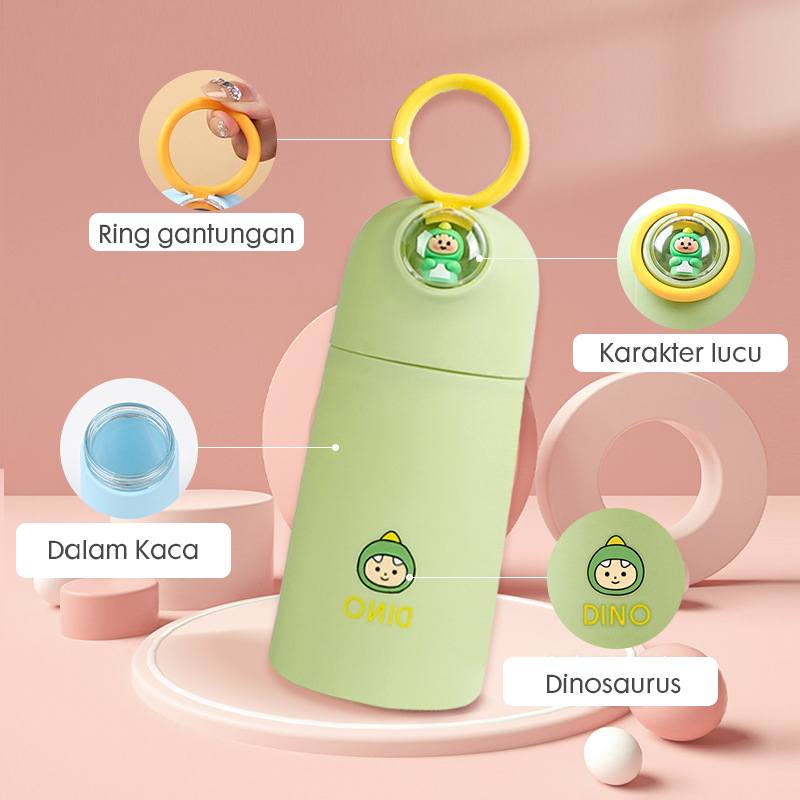 Botol Minum Kaca Dino Pigpig Bear Rabbit 380 ml I Tumblr Botol Minum Cute I BPA Free