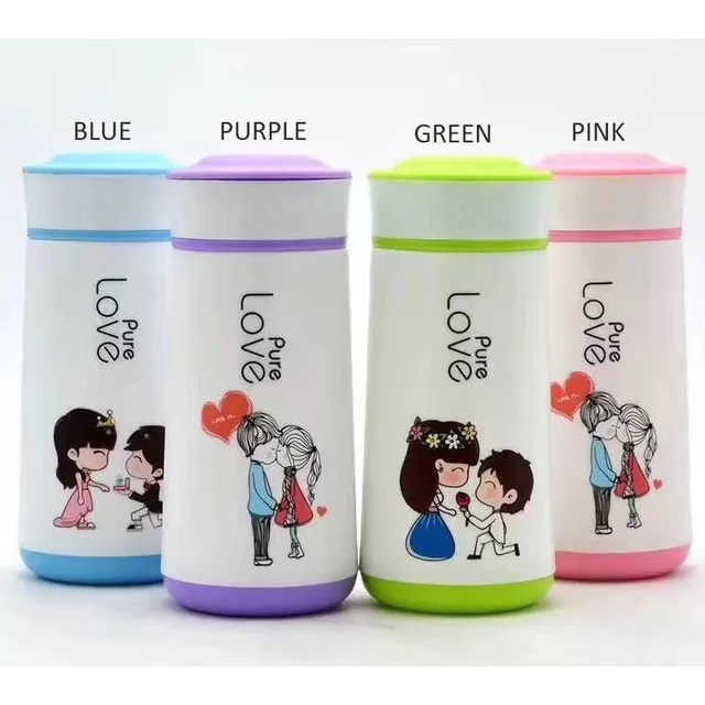 Botol ini bisa menampung suhu panas atau dingin. Sangat cocok untuk bekal anak sekolah karna botol love pure mini ini memiliki gambar karakter romantis.
