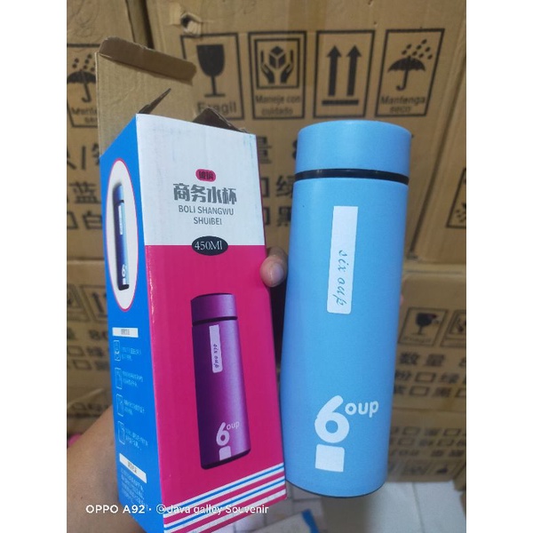 Detail Botol Minum Kaca Six Oup 450ML Cover Plastik dengan kemasan dus
