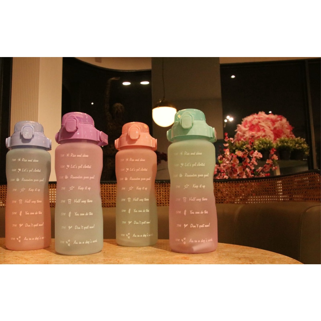 Botol Minum 2 Liter Tutup Flip Dengan Sedotan Tempat Minum Air Penanda Waktu Botol minum viral hits di amazon dipakai artis-artis sekarang ready di Indonesia. Pastikan kebutuhan air kamu sehari-hari sudah tercukupi dengan minum air setidaknya 2L. Dengan penanda waktu di botol yang mengingatkan untuk terus mecukupi kebutuhan harian air putih untuk kesehatan badan. Kapasitas botol air : 2L / 64Oz Ukuran botol : 33 cm x 11 cm (diameter) Bahan botol : PC + PP + food grade silikon (tidak disarankan untuk minuman panas) Mulut botol : Tutup Flip-Flop mengunci dengan sedotan Pengguna : Semua umur Ketahanan : anti bocor, tidak bocor/rembes Permukaan botol air : dengan penanda waktu dan kata kata yang memotivasi DESAIN FUNGSIONAL: Dengan tutup ulir dengan pegangan, bukaan mulut yang mudah diisi, sedotan yang dapat dilepas, pegangan jinjing, dan penanda waktu yang memotivasi. Transparan dengan skala, bagus untuk membuat rencana minum air setiap hari KEUNGULAN : Di design dengan penanda waktu untuk mengingatkan konsumsi air per 2 jam, lengkap dengan pegangan yang kuat, ringan namun tahan lama untuk digunakan, hadir dengan berbagai warna cerah, ini sangat cocok untuk hadiah orang yang Anda cintai, untuk membantu mereka tetap terhidrasi dan sehat.