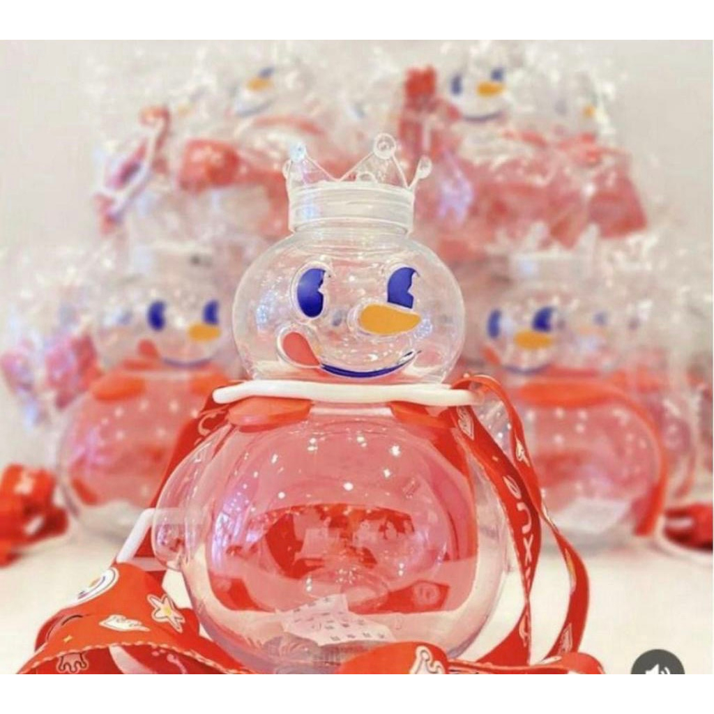 Botol minum yang sangat lucu, dengan motif boneka salju khas Mixue. Cocok dipakai untuk minuman segar seperti susu segar, milk tea, tea, ataupun infused water. Selain itu juga cocok dipakai sebagai pajangan (diisi butiran styrofoam putih atau kelereng)
