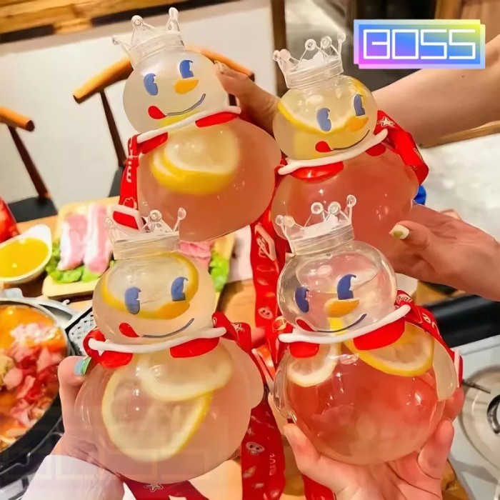 Botol minum yang sangat lucu, dengan motif boneka salju khas Mixue. Cocok dipakai untuk minuman segar seperti susu segar, milk tea, teh, ataupun infused water. Terbuat dari bahan yang aman digunakan dan tidak membahayakan kesehatan tubuh Anda. Botol ini juga memiliki 2 cara penggunaan yang berbeda, cara pertama dengan membuka tutup botol seperti botol minum pada umumnya, cara kedua dengan membuka katup bagian atas tutup dan minum menggunakan sedotan. Dilengkapi dengan tali yang dapat digantung untuk menggantung botol, sehingga memudahkan untuk membawanya.
