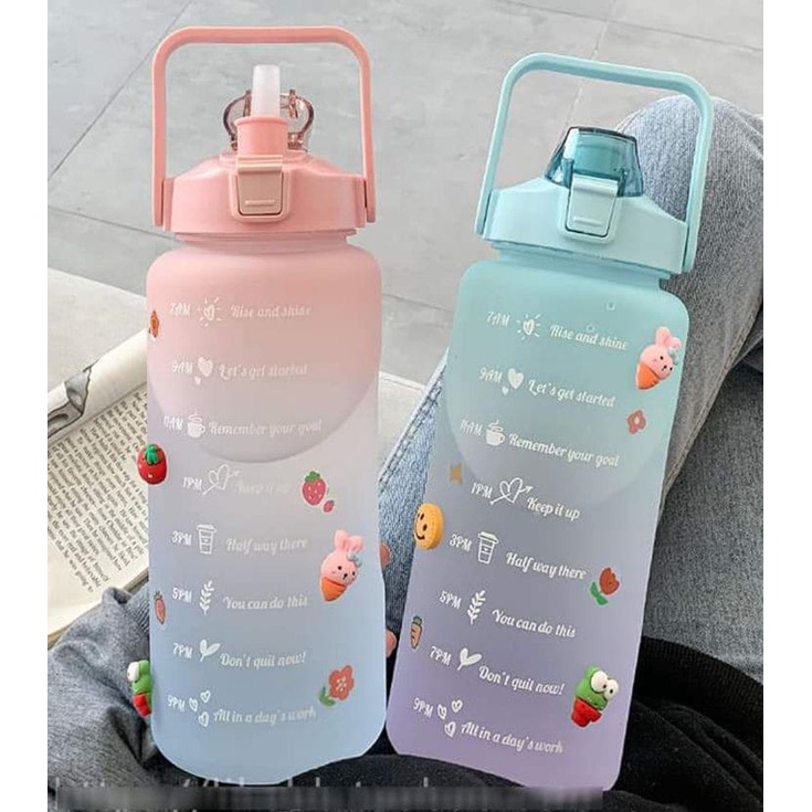 Botol minum viral hits di amazon dipakai artis-artis sekarang ready di Indonesia. Pastikan kebutuhan air kamu sehari-hari sudah tercukupi dengan minum air setidaknya 2L. Dengan penanda waktu di botol yang mengingatkan untuk terus mecukupi kebutuhan harian air putih untuk kesehatan badan.