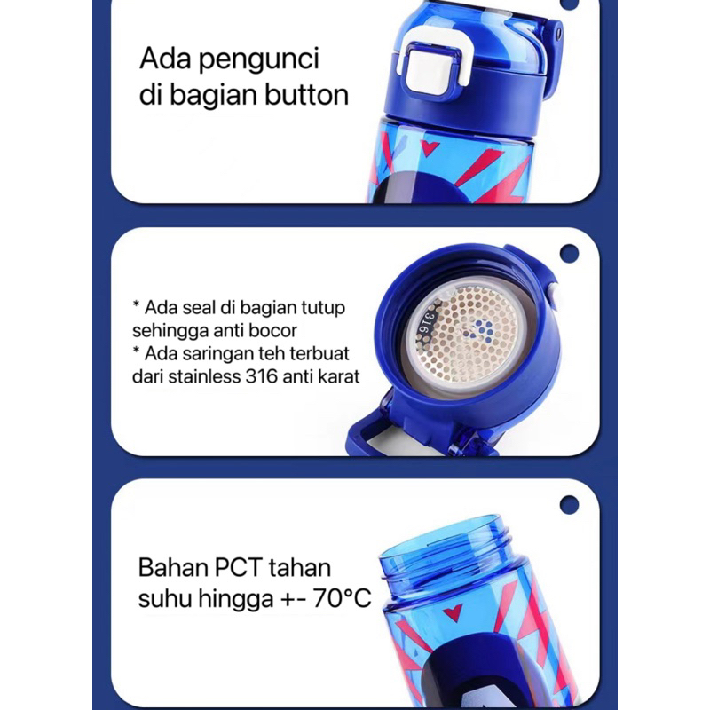 Detail Botol Minum Super Hero Spiderman Elsa Captain Bahan Tritan BPA free