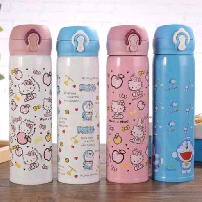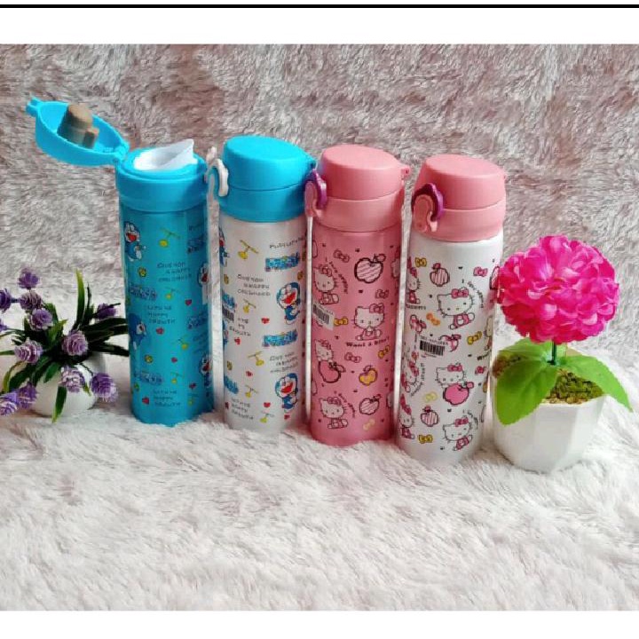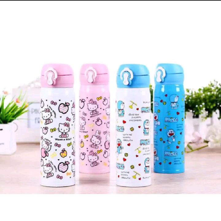 Botol Minum Termos Motif Karakter Lucu Termos Vacuum 500 ml Termos Panas Dingin Stainless Termos Mini Mudah Dibawa Kemana-mana. Dengan lapisan stainless stell yang dapat menjaga suhu minuman tetap hangat sangat cocok membawa bekal minum/tempat susu bagi si buah hati. Selain itu juga mudah untuk dibersihkan. • Termos ini mempunyai system Lock sehingga tidak mudah terbuka jika kita tertekan pada bagian pembukanya. • Sangat praktis untuk dibawa kemanapun • Bisa Untuk panas maupun dingin • Mudah dibersihkan