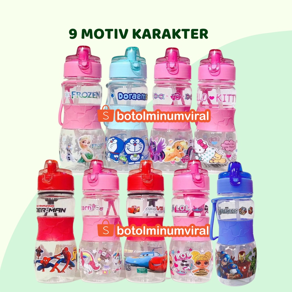 Detail Botol Minum Viral Karakter Anak Sekolah TK SD Sedotan BPA FREE Import Kartun Suvenir Hadiah Kado