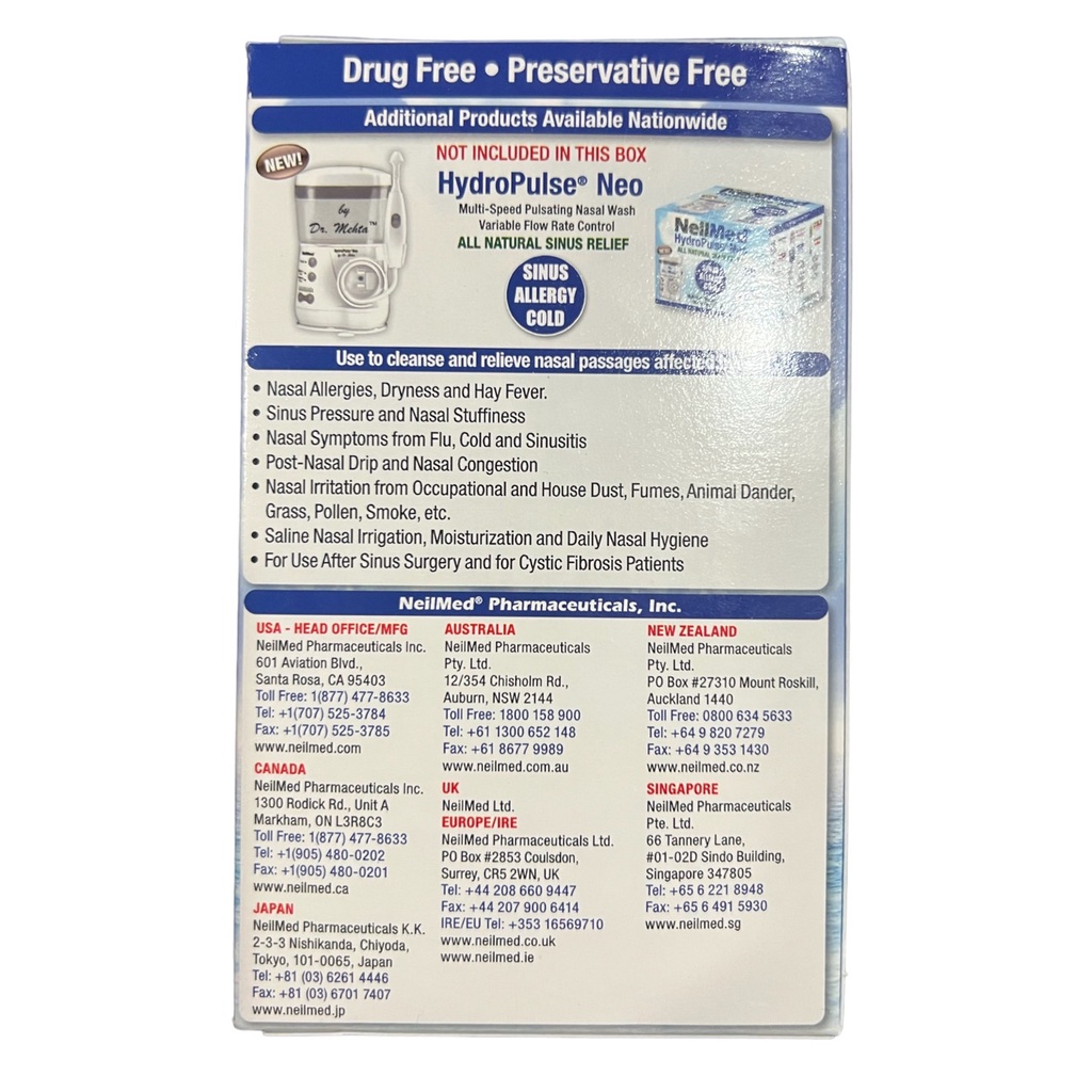 Sachet bilas sinus dewasa NeilMed dirancang untuk meredakan sinus secara alami dan bebas obat. Ketika digunakan bersama perangkat botol irigasi hidung NeilMeds, bahan-bahan dalam sachet dapat secara efektif meredakan gejala alergi dan sinus seperti alergi dan hidung tersumbat, tekanan sinus, dan hidung tersumbat.