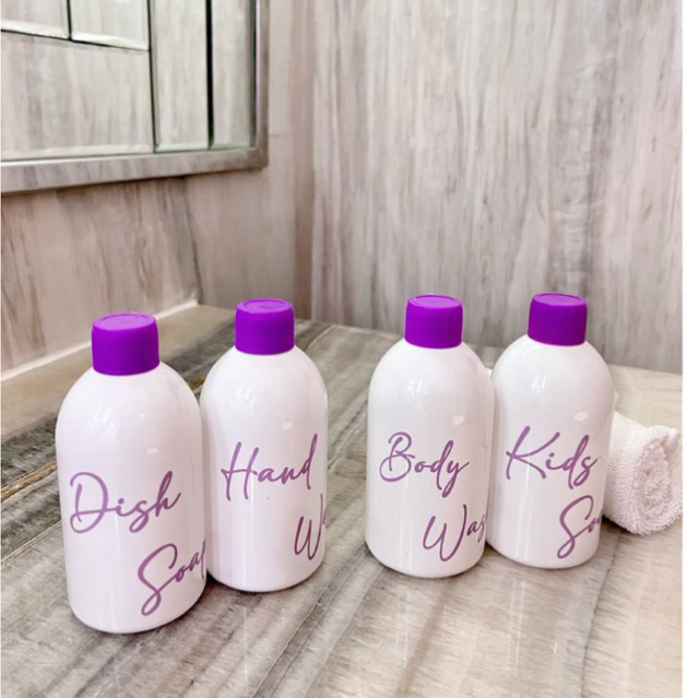 Detail botol NEW PUTIH LILAC 250ml . aesthetic bottle refill organizer tempat sabun cair estetik dispenser soap warna ungu