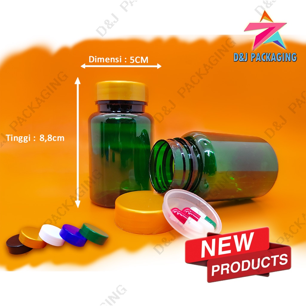 Botol Obat Isi 60 Kapsul 135 ML Hijau Tutup Polos + Plug InnerBotol Obat Isi 60 Kapsul 135 ML Hijau Tutup Polos + Plug Inner