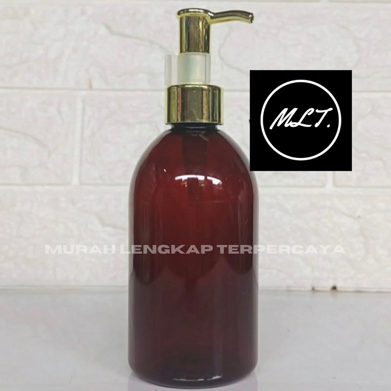 BOTOL OVAL 250ML AMBER COKLAT TUTUP CLIP OIL PUMP LOCK CLIP OIL GOLD SILVER PET SCRLET 250 ML PUMP LUXURY