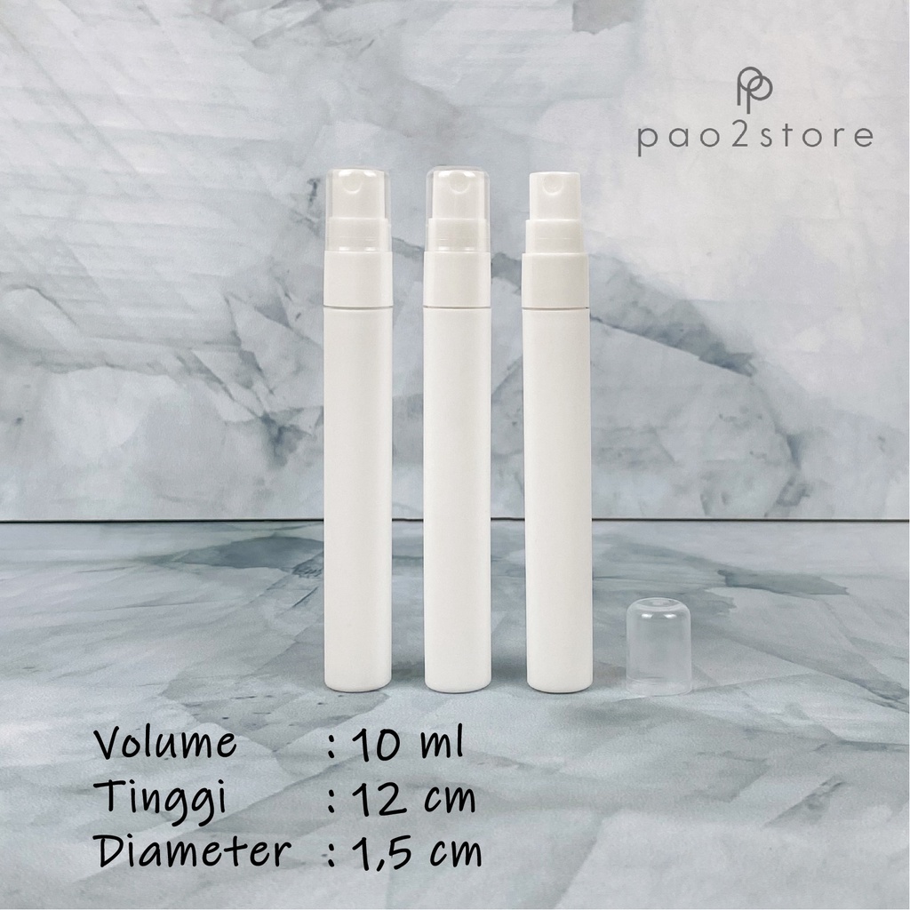 Detail Botol Pen Spray 10ml Plastik (PP) Putih Doff Matte - Refillable Parfum Isi Ulang Travel Size