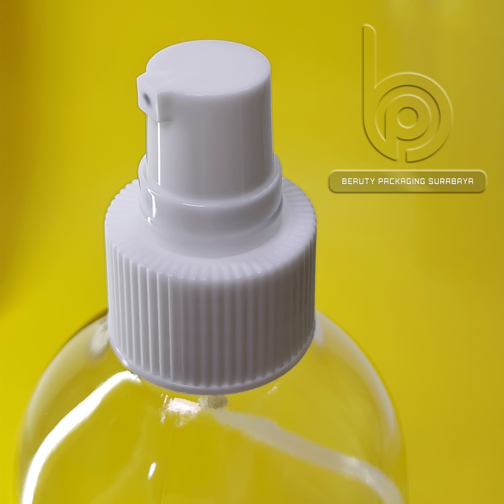 Botol plastik 250ml Oval bening tutup pump treatment HC putih