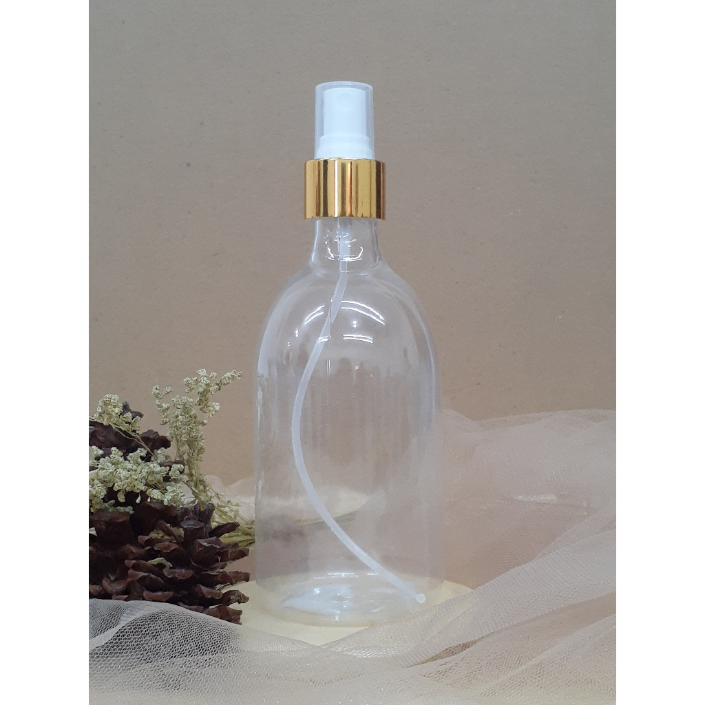 Botol Plastik PET 300ml Scarlet Bening Tutup Spray Gold