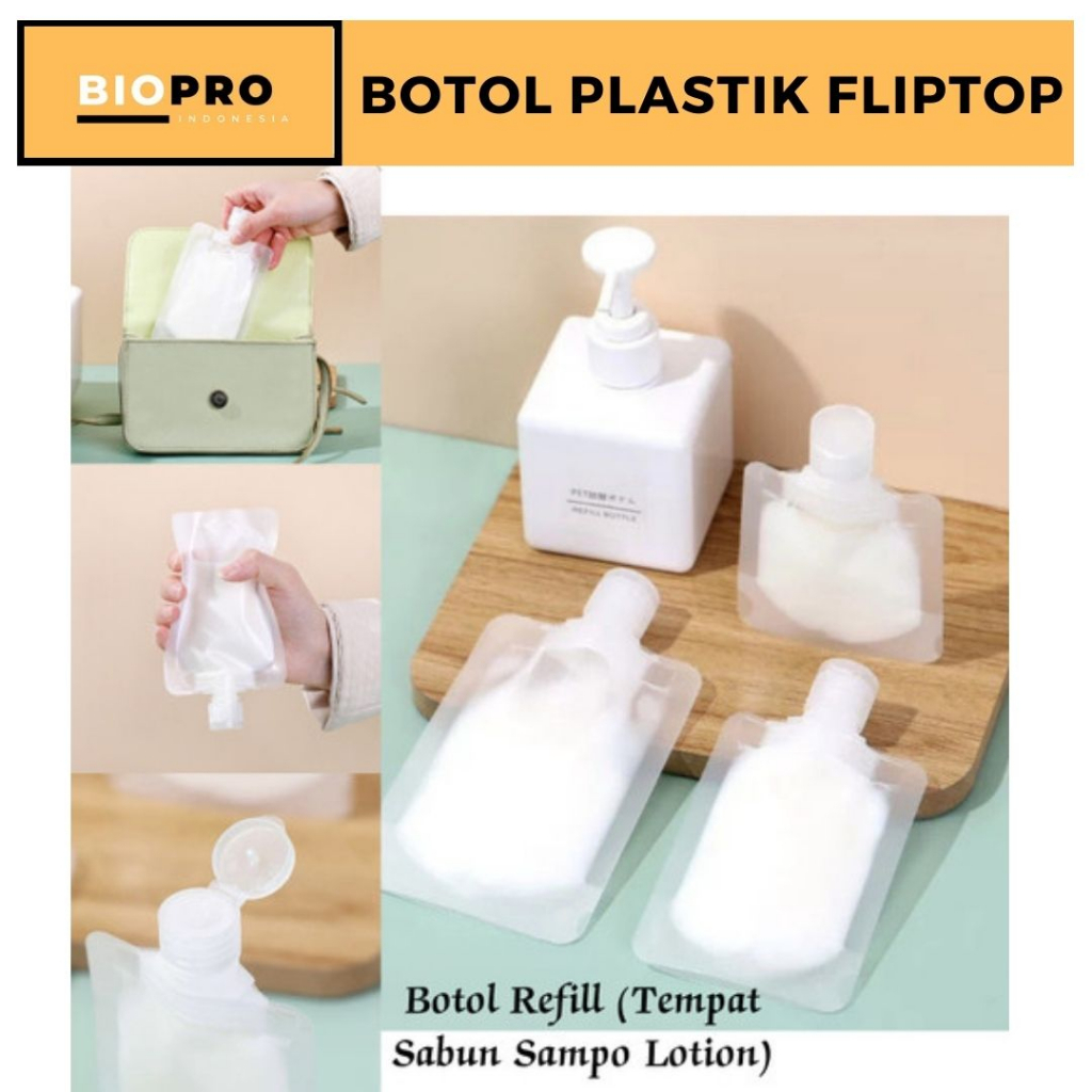 Detail Botol Plastik Refiil Travel Tempat Isi Ulang Sabun ,Shampo Cair / Botol Plastik Fliptop Traveling 100ml