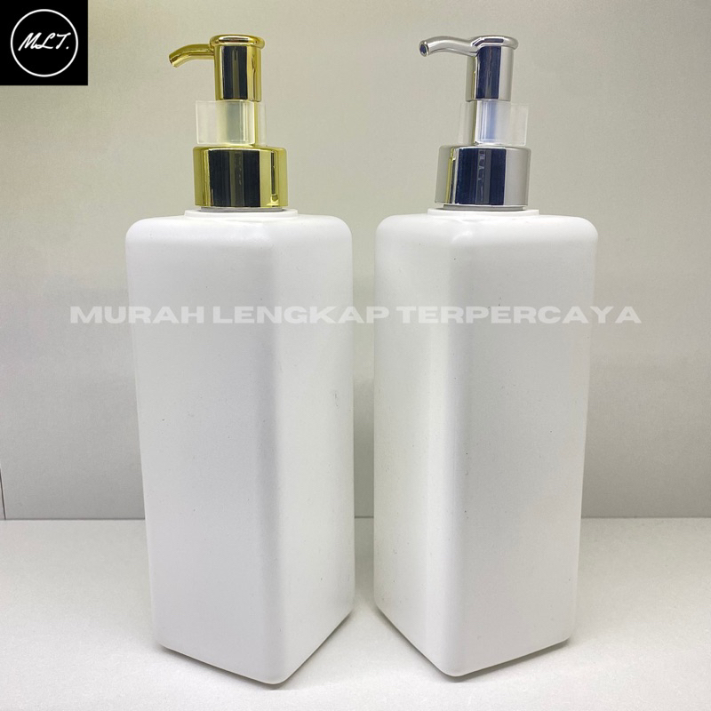 BOTOL PUMP 500ML KOTAK HDPE PUTIH / TUTUP CLIP OIL GOLD SILVER 500 ML