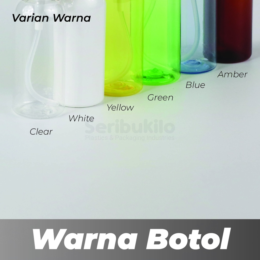 Detail Produk : Bahan = Plastik PET Volume isi = 60 ml Tutup = Treatment Pump 18 - Silver Half Cover Warna Botol = Bening, Putih, Biru, Kuning, Hijau, Amber