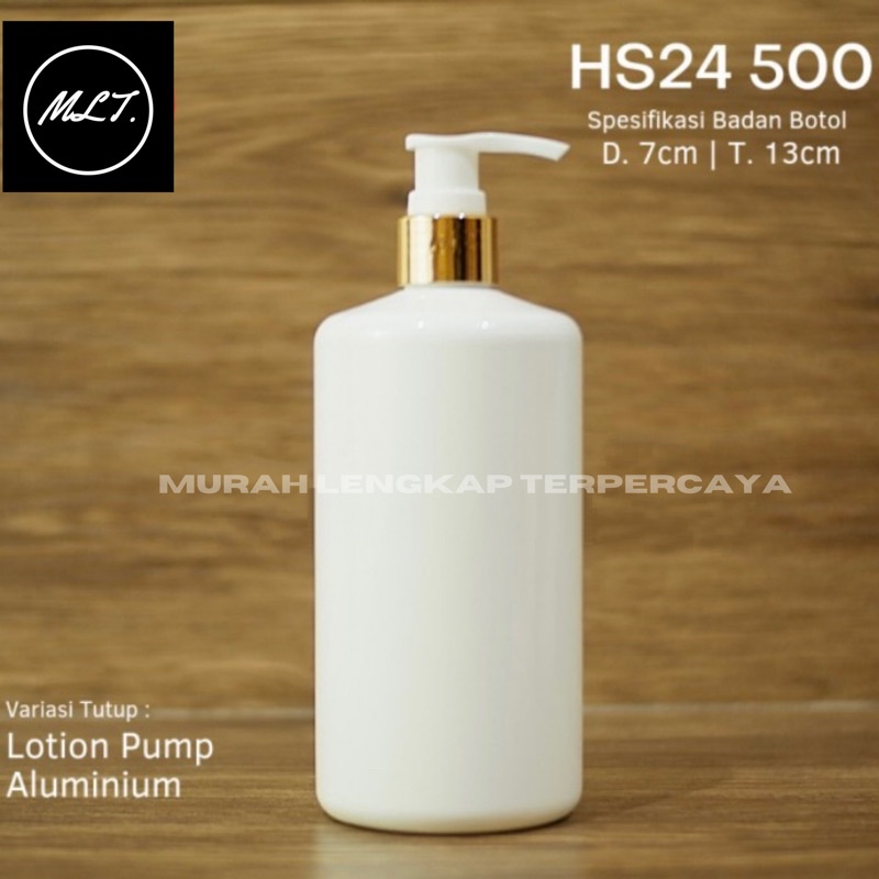 BOTOL PUMP LOTION 500ML PUTIH LOTION GOLD PUMP / BOTOL HS 500 ML PUTIH TUTUP POMPA GOLD PET