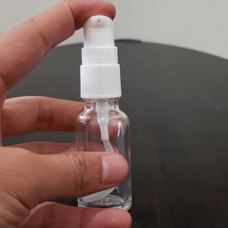 Detail botol pump treatment 30ml kaca bening tebal / botol kaca 30ml tutup pump
