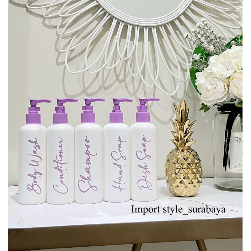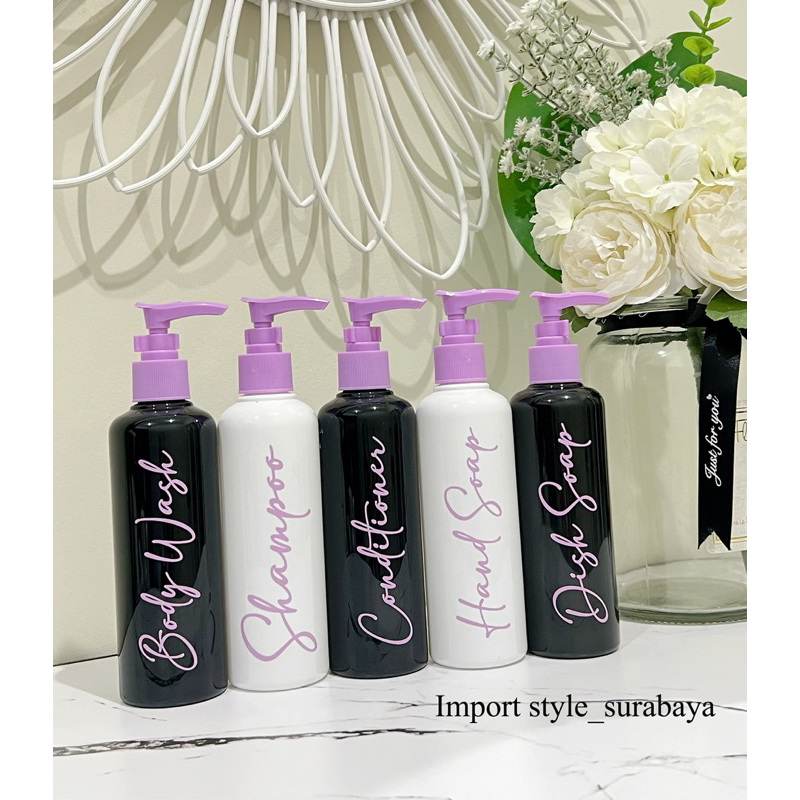 botol PUTIH 250ml GLOSSY stiker LILAC / UNGU . aestetik tempat sabun cair aesthetic bottle refill soap pump estetik