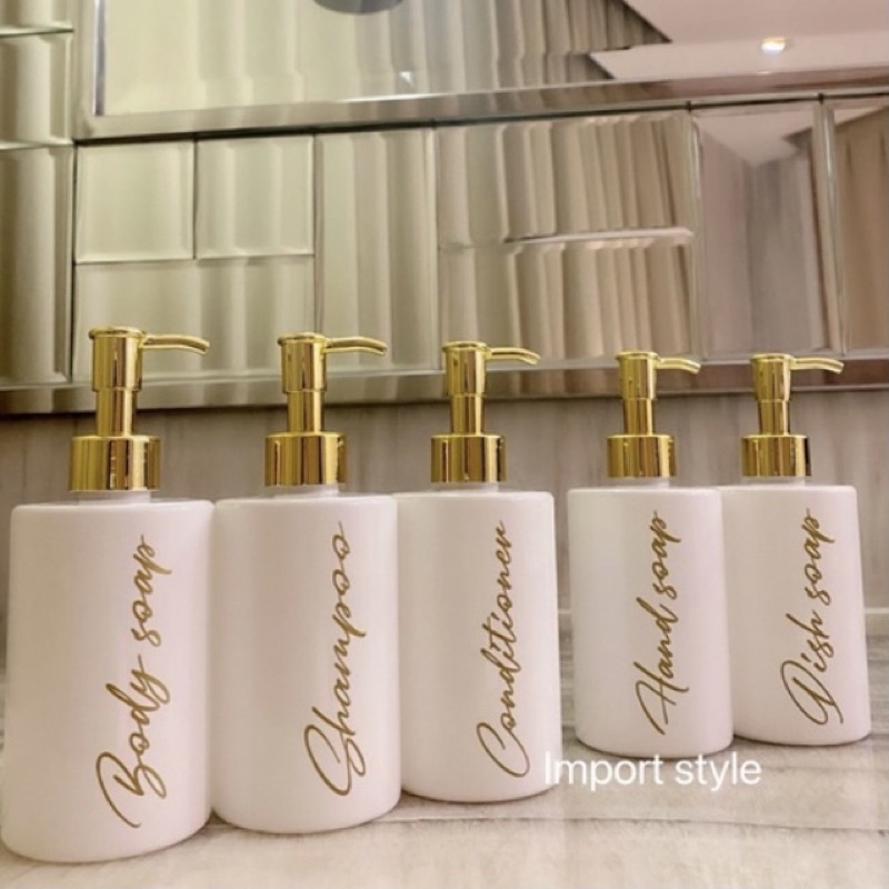 Tas Wanita > Koper & Tas Travel > Botol & Wadah Isi Ulang > BOTOL PUTIH EXCLUSIVE 250ML AESTHETIC BOTTLE MINIMALIST REFILL ORGANIZER TEMPAT SABUN CAIR PUMP LOTION CLIP OIL GOLD TEMPA