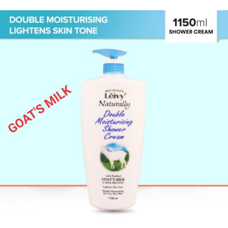 Leivy Naturally Shower Cream with Goat's Milk 1150ml - Shower Cream dengan kelembaban maksimal, diperkaya dengan Susu Kambing menghasilkan kulit yang lembut dan halus - Susu Kambing melembabkan kulit dan memperlampat kehilangan kelembaban pada saat yang sama - Susu Kambing mengandung protein yang menutrisi kulit dan mencegah kering dan kusam pada kulit - Ideal untuk semua jenis kulit GKRG