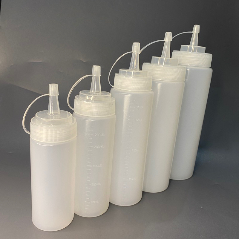 Kegunaan dan keunggulan produk : - bisa digunakan untuk minya, saus dan mayonnaise - bahan : PE , bahan lentur dan mudah dibersihkan - tutup kuat (putar) - tesedia 5 ukuran : - 6 oz / 180 ml - 9 oz / 270 ml - 13 oz / 390 ml - 18 oz / 550 ml - 24 oz / 710 ml