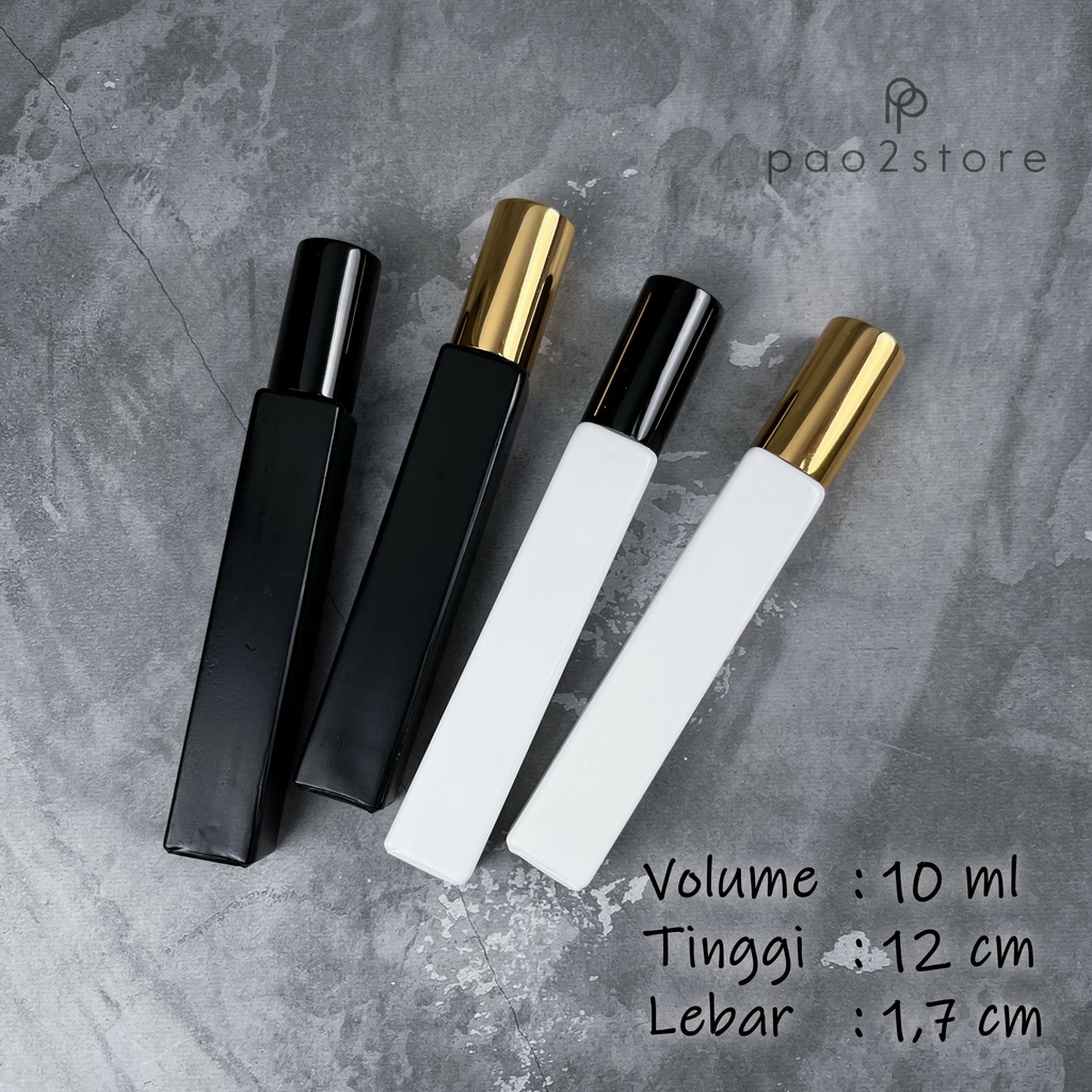 Detail Botol Spray 10ml Kaca Tebal HITAM PUTIH Doff Matte model Kotak Tinggi Refill Parfum