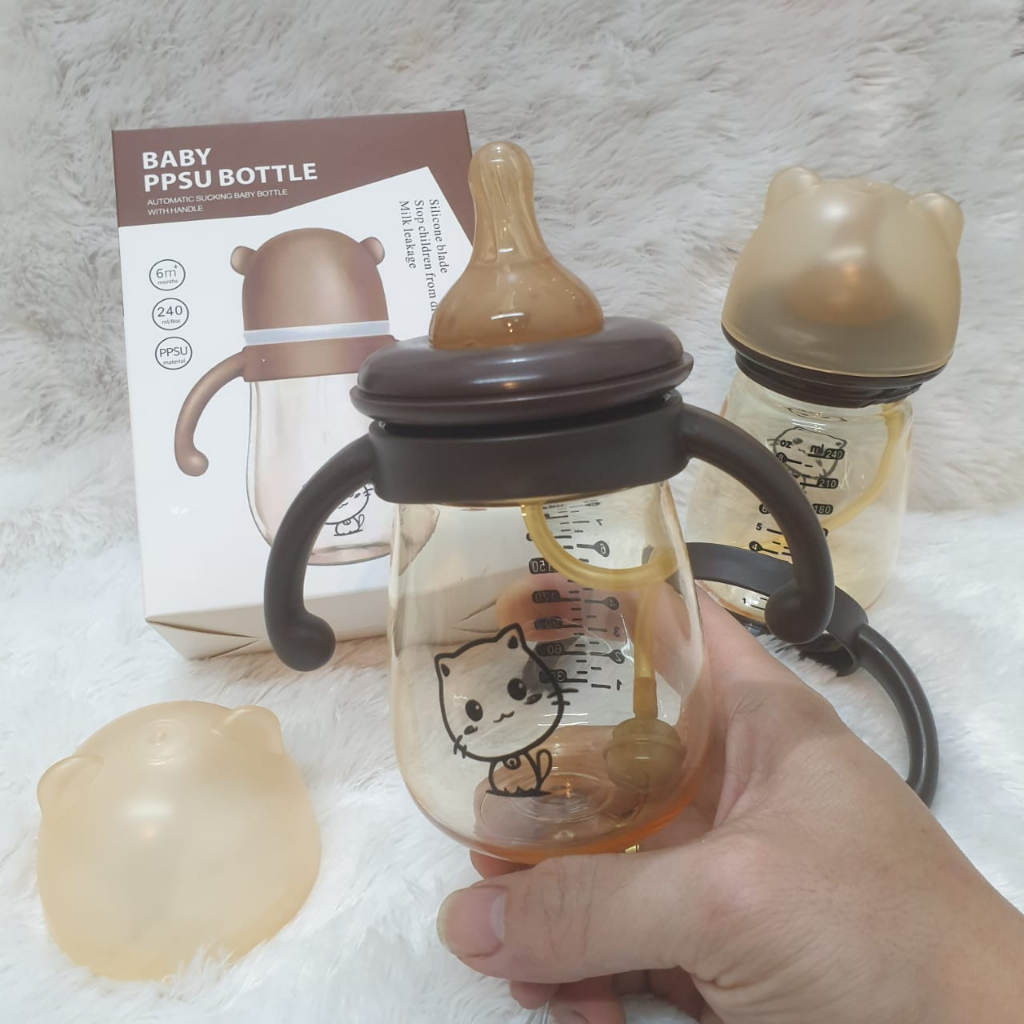 Botol susu ini terbuat dari bahan PPSU (polyphenylsulfone) yang merupakan salah satu jenis termoplastik berperforma tinggi yang memiliki karakteristik tahan terhadap panas tinggi sampai 180⁰ C dan tahan benturan keras. Jenis plastik ini banyak digunakan di dunia medis dan pesawat. Botol susu PPSU dirancang khusus oleh para designer, agar si Kecil menyukai proses transisi kebiasaan minum dengan cara yang paling alami.