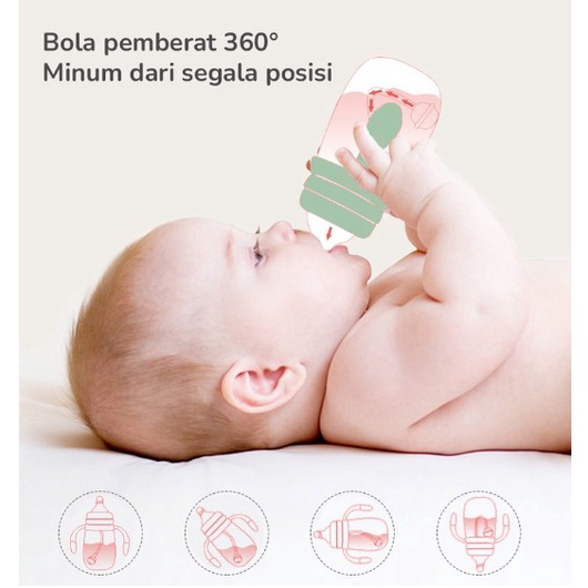 Detail Produk: ~ Tersedia 2 Kapasitas: 180ml & 300ml ~ Tersedia 2 pilihan warna: Tosca & Oren ~ Termasuk Nipple dengan Lebar dimensi 6.5cm, untuk Usia Bayi 6bulan+ ~ Termasuk Gagang (Bisa pakai atau tanpa gagang) ~ Termasuk tutup botol ~ Termasuk Kemasan