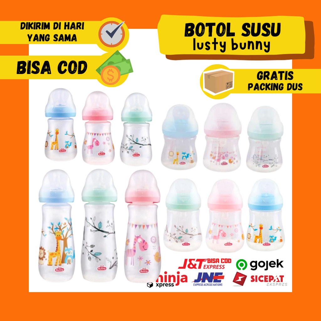 Botol Susu Lusty Bunny 125 250 ml Wadah Asi Bayi BPA Free Standar Neck Wide Neck Slim
