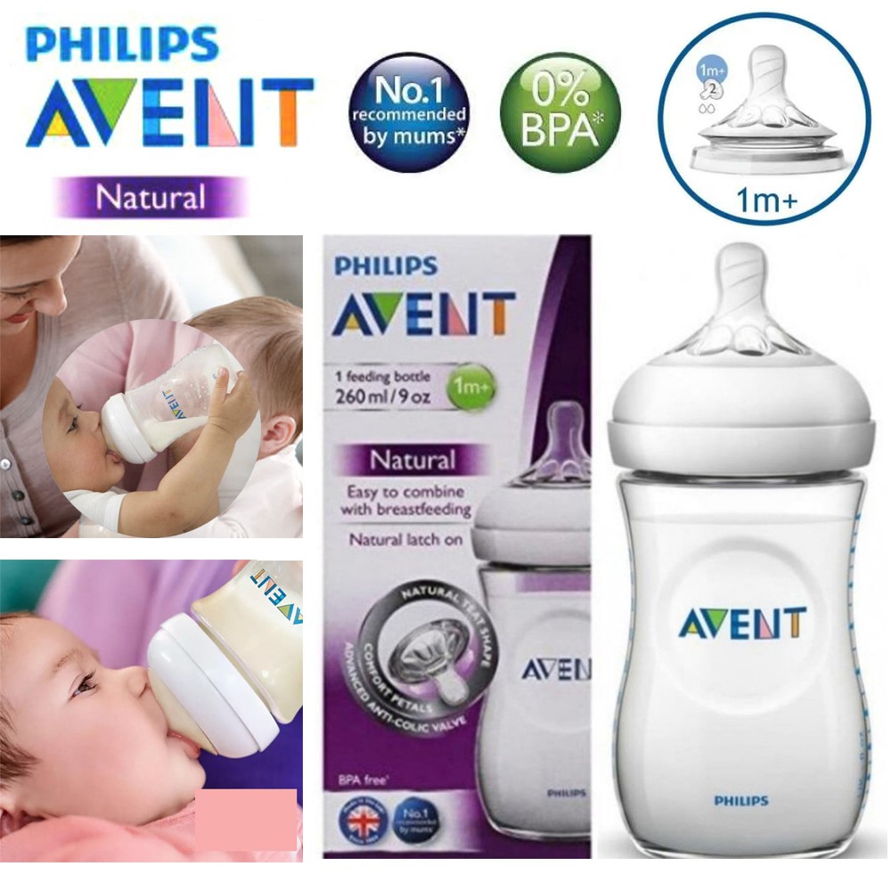 Philips Avent Natural Baby Bottle merupakan botol dengan dot selembut kulit sangat menyerupai payudara, dengan desain spiral yang lentur menjadikan cara paling alami untuk memberikan susu dengan botol pada si kecil. . Keunggulan: - Ukuran leher dot yang lebar menyerupai dan dot/ nipple yang selembut kulit dirancang untuk minum susu secara alami, sangat menyerupai payudara dan mencegah bayi dari resiko bingung puting - Desain spiral lentur dikombinasikan dengan kelopak yang nyaman dan untuk dot yang lebih lentur, memungkinkan pergerakan lidah yang alami tanpa kolaps - Teknologi katup anti-kolik yang unik agar bayi tidak tersedak yang terdiri dari dot dan cincin adapter sehingga udara tidak masuk ke dalam perut bayi, mengurangi rewel dan ketidaknyamanan dengan mengalirkan udara ke dalam botol bukan ke perut bayi Anda (anti kembung) - Botolnya sangat mudah digenggam, bahkan untuk tangan mungil si kecil sekalipun - Mudah dibersihkan. Hanya tiga komponen untuk memudahkan pembersihan - Tersedia lima tingkatan aliran dot yang berbeda sesuai kebutuhan bayi