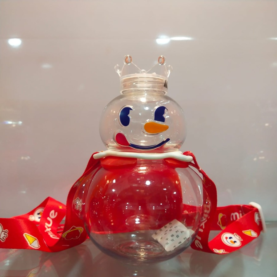 Botol minum yang sangat lucu, dengan motif boneka salju khas Mixue. Cocok dipakai untuk minuman segar seperti susu segar, milk tea, tea, ataupun infused water. Selain itu juga cocok dipakai sebagai pajangan (diisi butiran styrofoam putih atau kelereng)