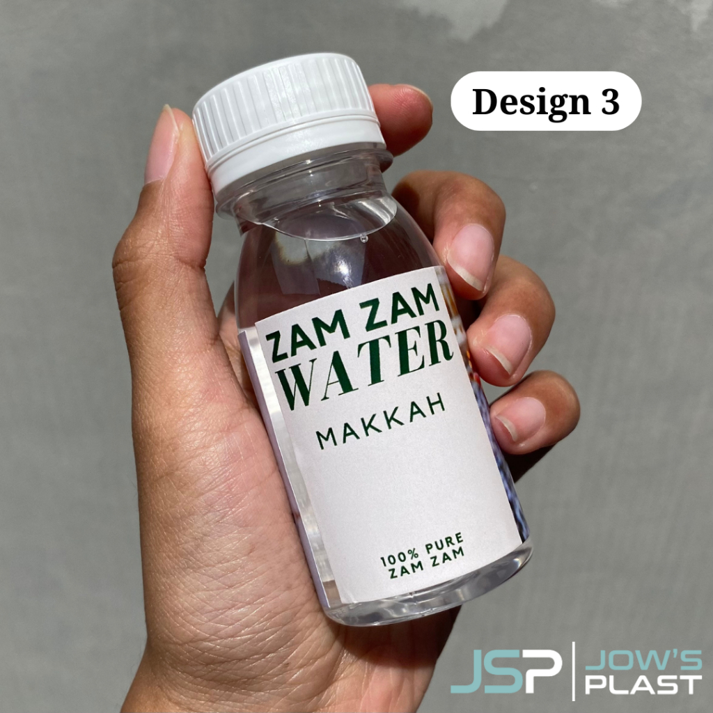 Tas Wanita > Koper & Tas Travel > Botol & Wadah Isi Ulang > Botol Zamzam 60 / 80 mL dgn Stiker Tutup Tinggi LN | PROMO PAKET PACKING AMAN Min. 100 pcs | Botol Plastik PET Zam - Zam 60 / 80 mL | Sticker Label