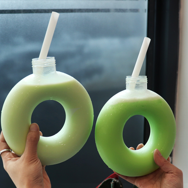 Detail (BOW) Botol Teh Jus 500Ml Dengan Bentuk Circle/Botol Minum Desain Creative Botol Susu Desain Donat