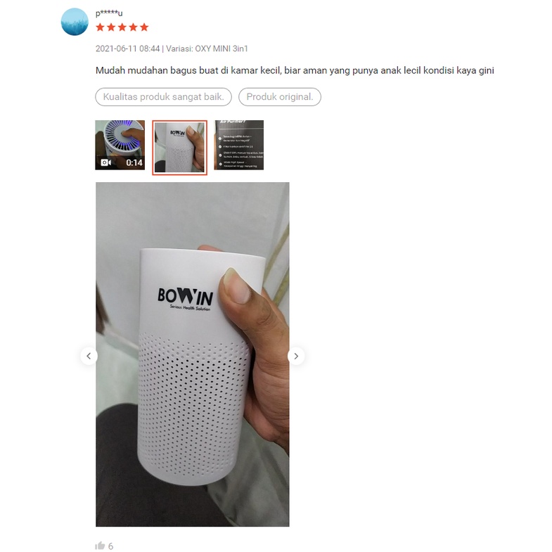 Video perkenalan produk Bowin Air Purifier Oxy Mini Pro 3in1 True HEPA ANION Karbon Filter. Sumber: Shopee.