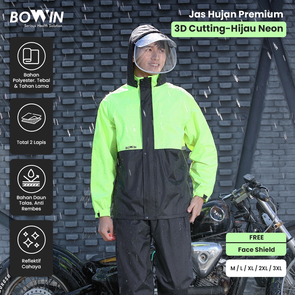 Detail Bowin Jas Hujan Premium 3D Cutting - Anti Bakteri & Windproof (Extra Face Shield & Masker)