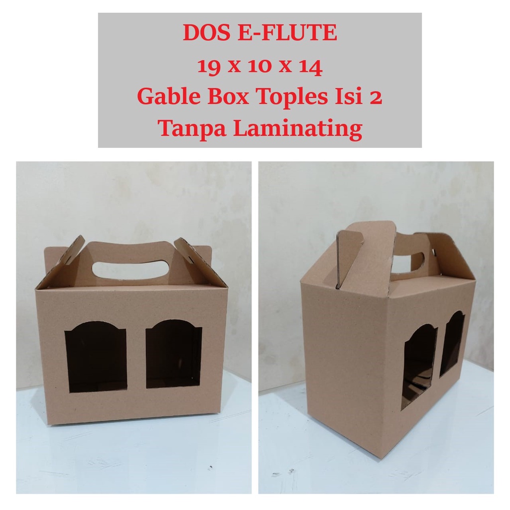 - Ukuran 19 x 10 x 14 cm (PxLxT) - Bahan Eflute Single Wall - Tanpa Laminasi - Untuk 2 Toples tabung 800 gram - MINIMAL 5 PCS
