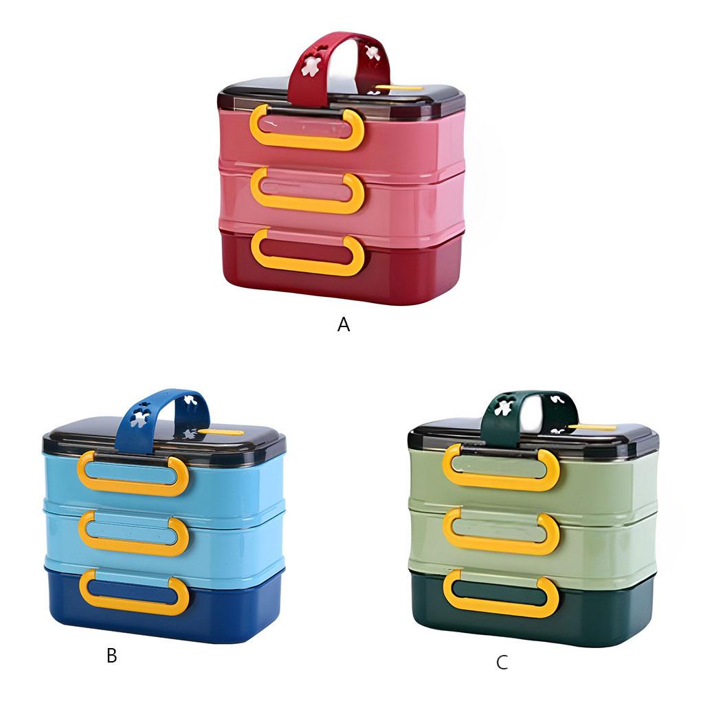 Desain Tiga lapis: Kotak ini memiliki desain tiga lapis yang memudahkan untuk menyortir makanan.