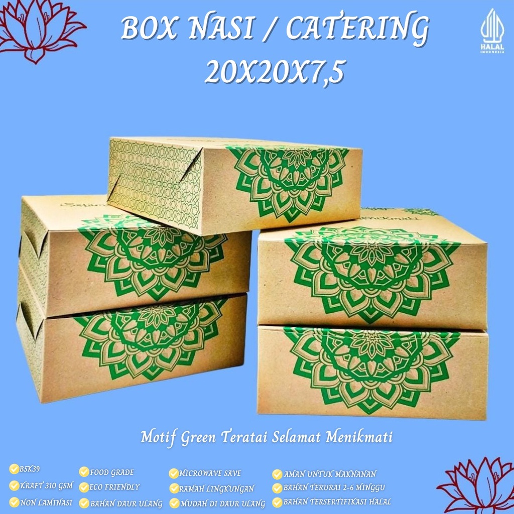 1. Material Kraft Paper 310 Gram 2. Food Grade, Eco Friendly, Ringan dan Kuat 3. Motif Teratai 4. Non Laminasi 5. Praktis Tidak Menggunakan Lem Atau Streples Autolock 6. Food Grade Paper PE : Kertas dengan sertifikasi foodgrade dan bahan kertas yang bisa daur ulang (recycle) 7. Microwave Safe (Aman dipanaskan dengan Microwave) 8. Eco Friendly : Ramah Lingkungan dan Mudah Didaur Ulang 9. Pengiriman Tidak di lipat Lebih Aman Tidak Mudah Robek 10. Aman digunakan makanan 11. Reseller dengan pemesanan banyak bisa menggunakan cargo untuk pengiriman ke seluruh indonesia 12. Untuk Harga Grosir Free ongkir area Jabodetabek min. Order 1.000 pcs ( S&K BERLAKU), silahkan chat admin