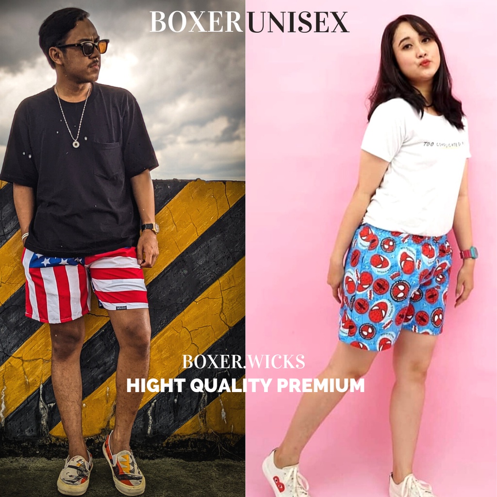 BOXER WICKS KUALITAS PREMIUM ð¥ keterangan : °bahan kain disperse grade A °ukuran all size muat sampai ukuran 34 (maksimal BB 85kg) °panjang celana 45cm °lingkar paha 67cm °ada kantong saku sebelah kanan Bisa buat cewe dan cowo ð