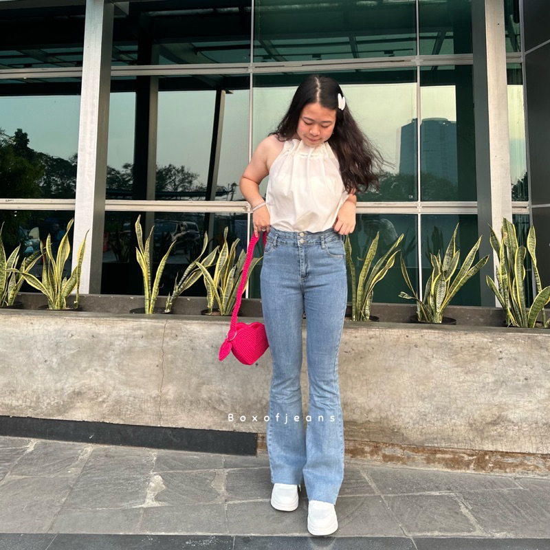 Panjang celana: 98-100cm Bagian bawah kaki model flared + unfinished yang lagi on trend !👌🏻