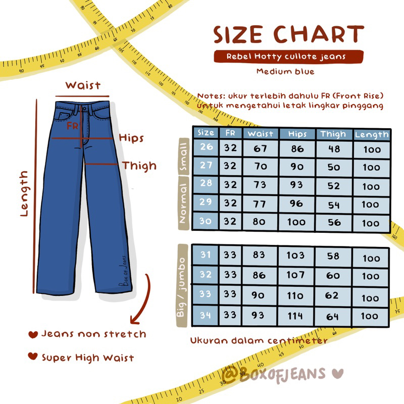 Panjang celana: 100cm ( rebel = bagian kaki bawah tidak dijahit ) Bikin kaki terlihat jenjang & stylish!๐๐ป