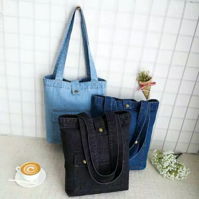 Detail Bp Pocket Denim Tote Bag Saku Kancing Tas Bahu Jinjing Wanita Jeans Kuliah Sekolah Korea Cina