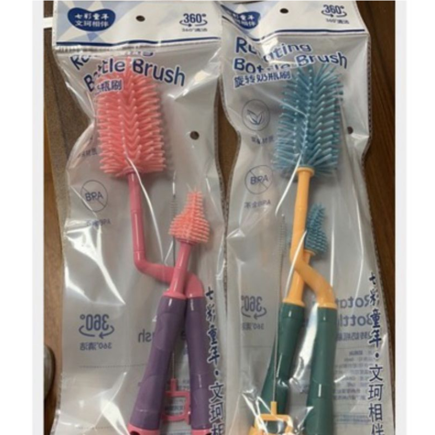 Warna:Yellow, Purple Bahan: ABS + Silica gel Kemasan produk: tas opp Produk termasuk: 1 buah sikat botol + 1 buah sikat dot + 1 buah sikat jerami